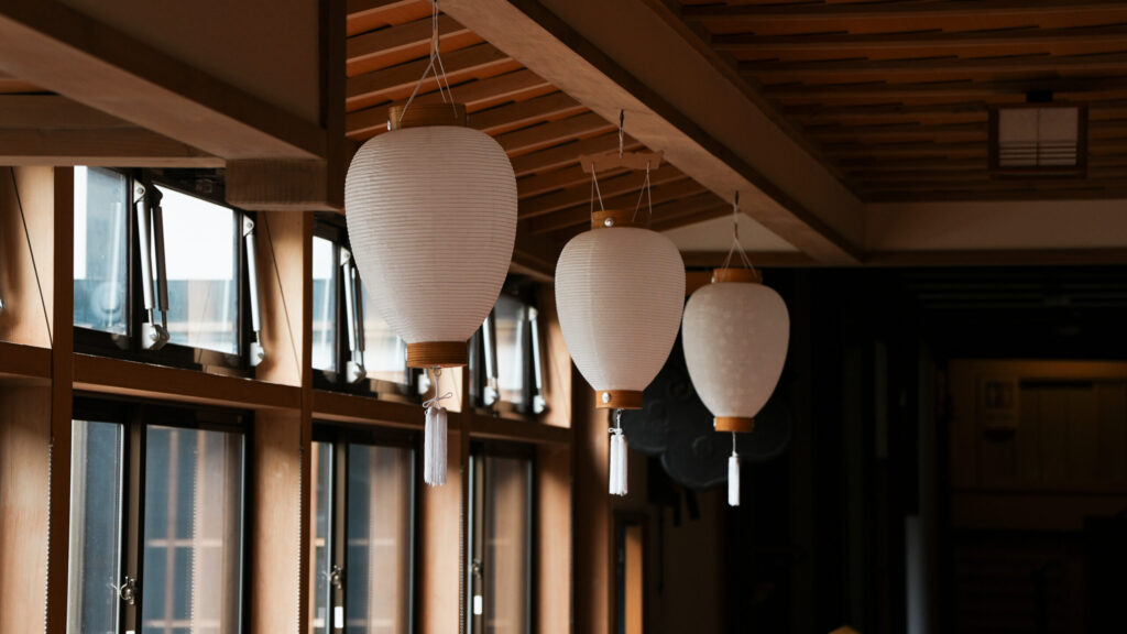 白い提灯は初盆供養の提灯です。白は真っ直ぐなご供養の心を表します。