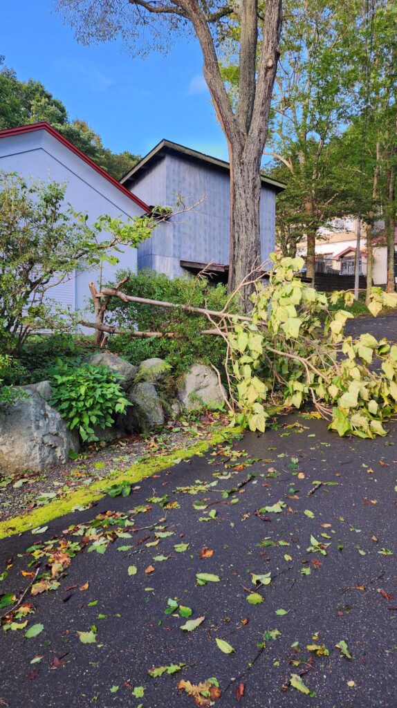 先日の暴風雨の際に、柳と桐の木が折れてしまいました。
